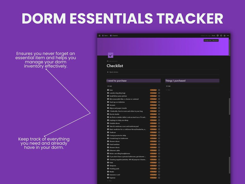 Ensures you never forget an essential item and helps you manage your dorm inventory effectively.