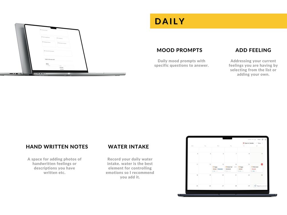With daily, hourly, and monthly features, this template makes it easy for users to gain insights into their mood patterns and emotional well-being.