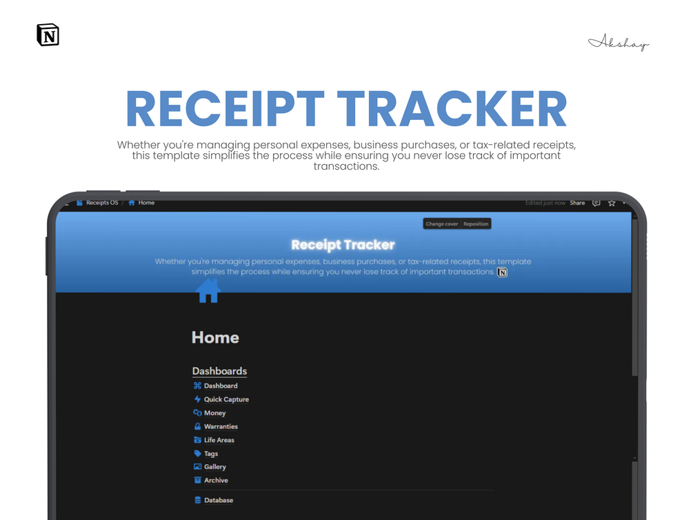π Start using the Receipt Tracker Notion Templateβ’οΈ today and take control of your financial records!